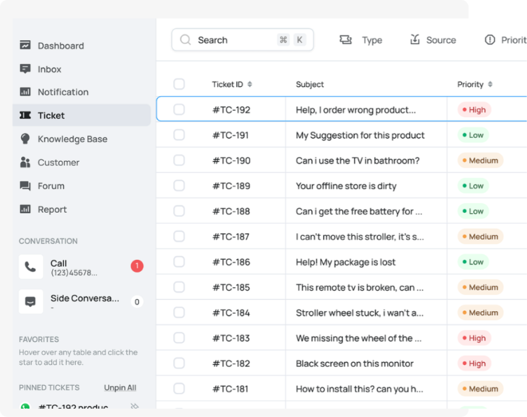 Empower your agents with a comprehensive, searchable knowledge base – the single source of truth for all your product and support information.